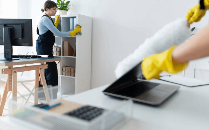Workstations & Desks: Sanitizing high-touch surfaces and dusting electronics.